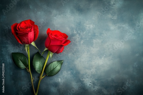 Elegant red roses on a marble surface for Valentine from top view with copy space for text, Valentine's Day banner for advertising