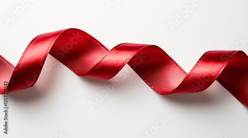 Elegant Red Satin Ribbon Twisting on White Background for Decor
