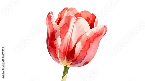 Elegant red tulip watercolor illustration featuring refined simplicity and delicate petals.