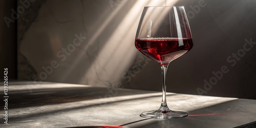 Elegant Red Wine Glass on Marble with Light Streaks, wine ,glassware