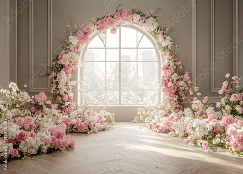 Elegant room features a window adorned with many beautiful flowers