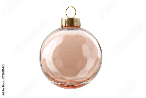 Elegant rose gold christmas ornament with golden cap on black background, cut out