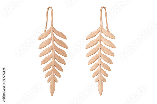 Elegant rose gold leaf-shaped dangle earrings isolated on transparent background