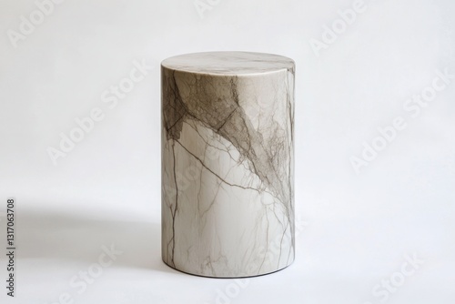 Elegant Round Marble Stool with Unique Pattern on White Background