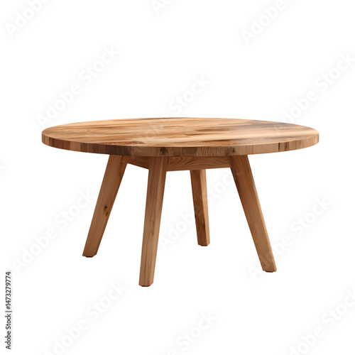 Elegant round wooden coffee table with simple legs design oak on transparent background