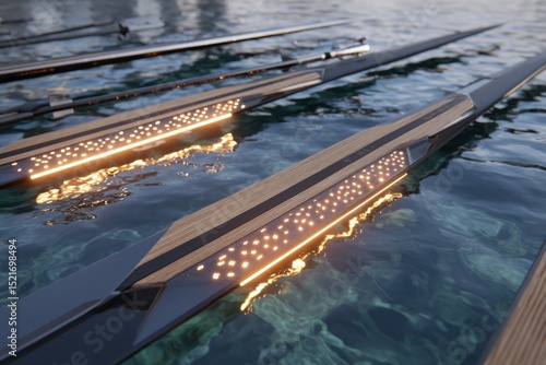 Elegant Rowing Oars Resting on Calm Water Under Soft Lighting