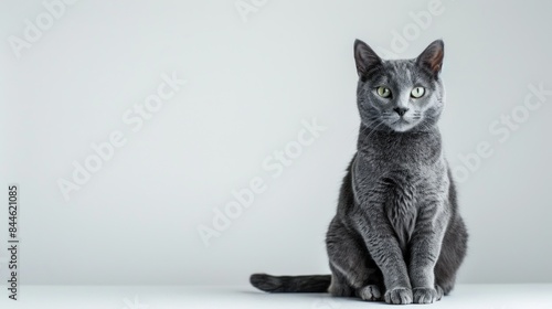 Elegant Russian Blue Cat on Simple Clean Background for Copy Space.