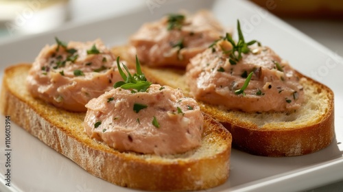 Elegant Salmon Mousse Spread on Toasted Baguette Slices