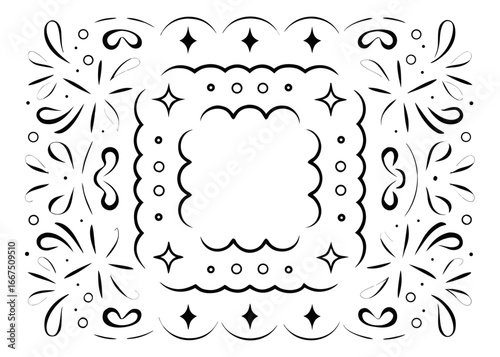 Elegant scalloped edge decorative frame design featuring rectangle and oval shapes in classic color palette