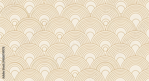 Elegant Seamless Concentric Circle Pattern – Beige Background, Golden Lines, Art Deco Japanese Style