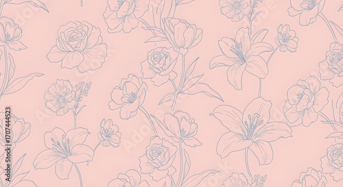 Elegant seamless floral outline pattern, ideal for packaging, stationery, and decorative backgrounds.