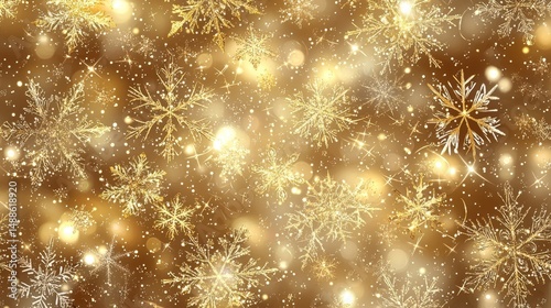 Elegant seamless pattern featuring gold snowflakes against a shimmering gold background.