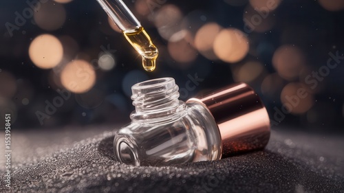 Elegant Serum Dropper with Bottle and Bokeh Background for Luxury Skincare