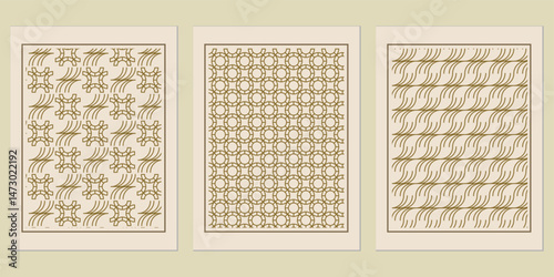 Elegant set of three minimalist geometric patterned wall art prints in earth tone, perfect for modern and chic home decor