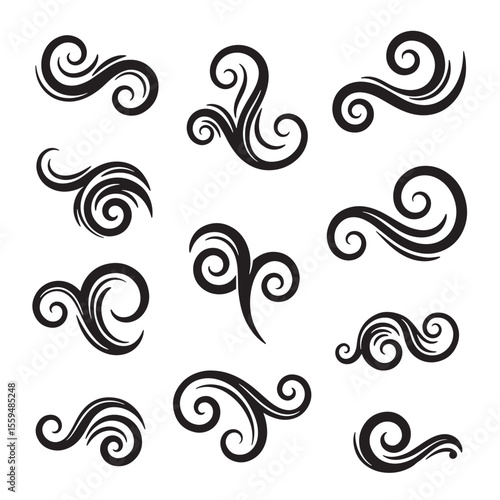 Elegant set of vector swirls and curls in vintage art silhouette style for design projects decorations and graphic elements