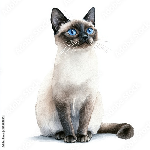 Elegant Siamese Cat With Bright Blue Eyes Sitting Gracefully