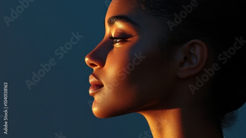 Elegant Side View of Woman with Glowing Skin in Minimalist Beauty Portrait
