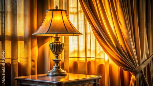 Elegant Silhouette: Golden Lamplight Through Luxurious Silk Curtains