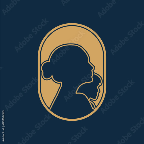 Elegant Silhouette: Minimalist Artistry in Gold and Navy"