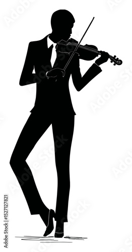 Elegant Silhouette of a Violinist in Formal Attire Playing Music