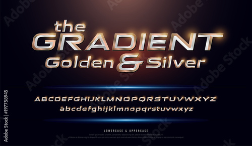 Elegant Silver and Golden Gradient Colored Metal Chrome alphabet font. Typography modern style gold font set for logo, Poster, Invitation. vector illustration