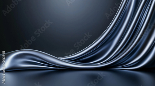 Elegant Silver Fabric Drape Design on Smooth Dark Background for Presentations and Visual Display
