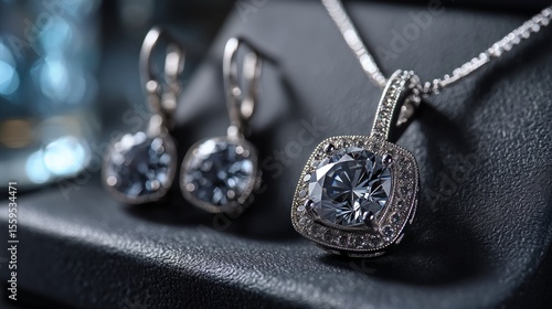 Elegant Silver Jewelry Set with Diamond Accents on Display for Sale