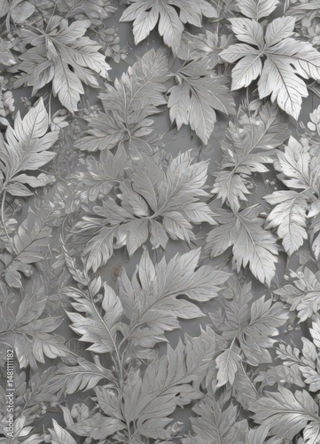 Elegant silver leaf wallpaper, seamless pattern, nature, metal