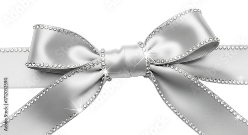 Elegant silver ribbon with diamonds isolated PNG with Transparent Background