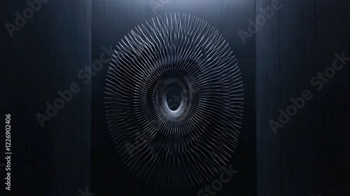 Elegant Silver Sculpture Radiating Light from Center Surrounded by Dark Tones