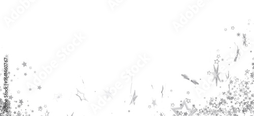 Elegant silver stars confetti on white. Perfect for holidays, events, and festive designs.