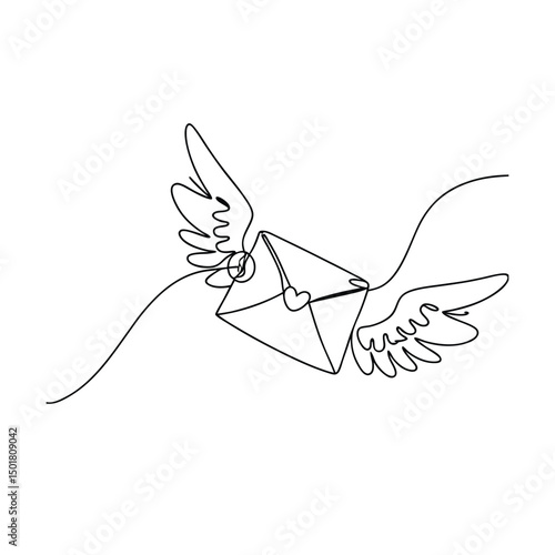 Elegant single line drawing of a winged envelope delivering a message of love and care