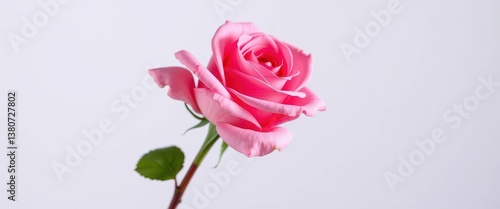 Elegant single-stemmed pink rose, delicate petals, long stem, spring, single rose, pretty