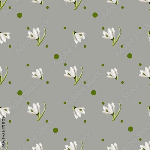 Elegant snowdrop pattern in watercolor for fabric and packaging designs