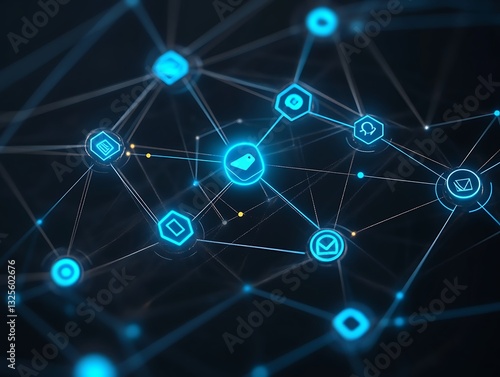 Elegant social media marketing icon with interconnected nodes and neon blue highlights