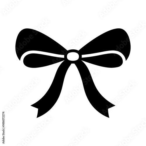 Elegant solid black ribbon bow, perfect for gift decorations and celebration graphics