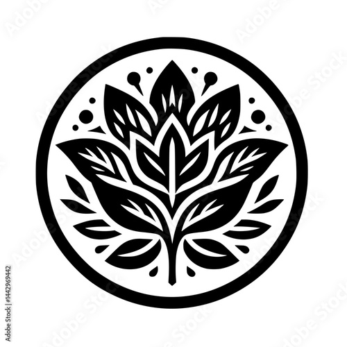 Elegant Stylized Floral Icon in Black Circle - Minimalist Botanical Vector Illustration