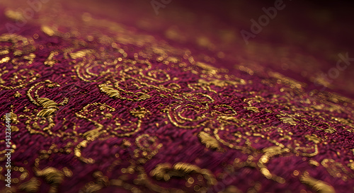 Elegant Textured Fabric with Golden Embroidery Close-Up Luxurious Detail