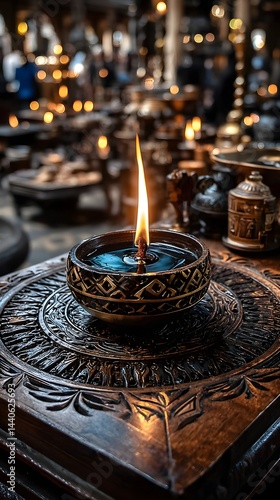 Elegant Traditional Candle on Ornate Table with Soft Glow in a Warm Atmosphere of a Cozy Setting