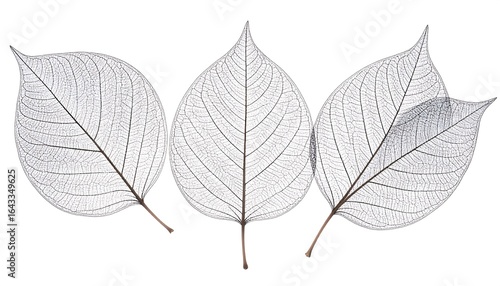 Elegant Transparent Leaf Skeletons on a White Background Showcasing Vein Structure