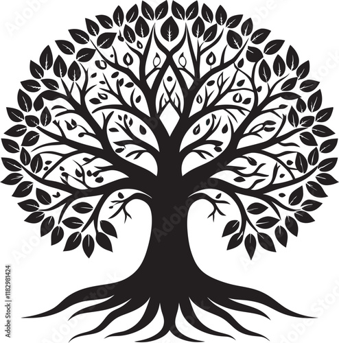 Elegant Tree of Life Silhouette with Intricate Branches and Leaves