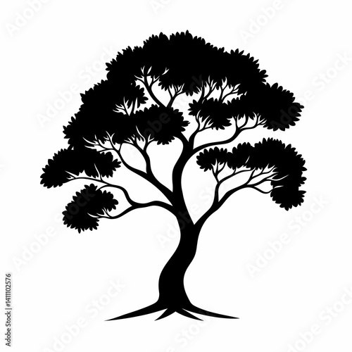 Elegant Tree Silhouette. Organic Display of Forest Biodiversity in Vintage Design