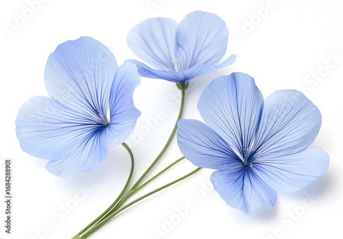 Elegant trio of flax flowers in vibrant blue, isolated on white.