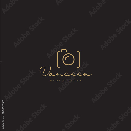 Elegant Vanessa Photography logo for your brand, stunning gold design on black background, perfect for photographers and creative businesses who seek luxury