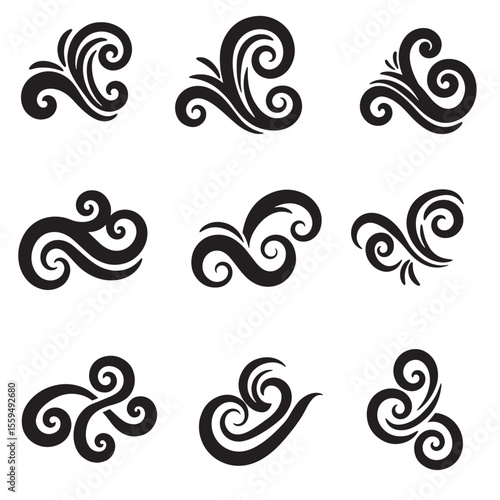 Elegant vector swirl and curl elements for design icon set of decorative floral embellishments