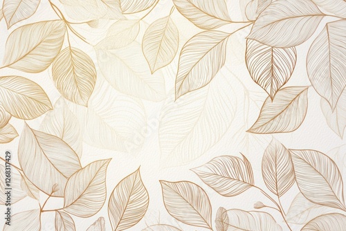 Elegant vector wallpaper with intricate gold leaves drawn in line art style over a soft textured natural backdrop, exuding a luxurious vibe.