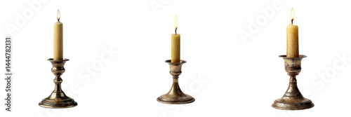 Elegant Vintage Candle Holders with Soft Flickering Flames Isolated on Transparent Background
