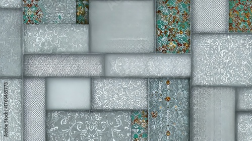 Elegant Vintage Floral Arabesque Design Tile Pattern in Soft Grey Hues with Intricate Textures