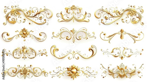 Elegant Vintage Gold Decorative Elements: Exquisite Frames, Swirls, and Borders for Timeless Design