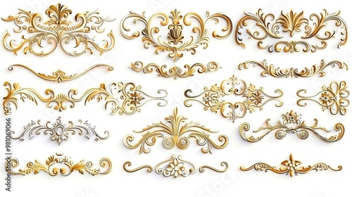 Elegant Vintage Gold Decorative Elements: Exquisite Frames, Swirls, and Borders for Timeless Design